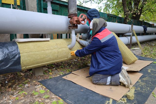 Наразі тривають роботи із заміни ізоляції на повітряній тепловій мережі (діаметр 325 мм) у Заводському районі. Фахівці вже оновили 100 м ізоляції, а загальна протяжність ремонтованої ділянки — 420 м.